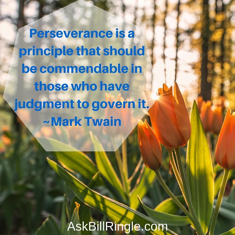 Perseverance is a principle that should be commendable in those who have judgment to govern it. ~ Mark Twain Quotecard / By Bill Ringle Perseverance is a principle that should be commendable in those who have judgment to govern it. ~ Mark Twain Read More »