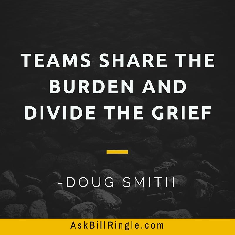 Teams share the burden and divide the grief. ~ Doug Smith Quotecard / By Bill Ringle Teams share the burden and divide the grief. ~ Doug Smith Read More »
